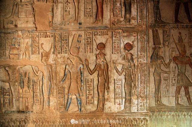 德爾麥迪那神廟簡(jiǎn)而精,建于托勒密時(shí)期,是愛神哈索爾和秩序女神瑪特的居所。幸好,里面的壁畫和浮雕沒有被后來(lái)的基督徒破壞,色彩依然鮮艷,保存比較完整,多為冥界真理大殿審判亡靈的場(chǎng)景。除了哈索爾及其他神祇,墻上還出現(xiàn)了一個(gè)有趣的家伙——“明”(Min)神,生殖器夸張的勃起來(lái)。他主司生產(chǎn)與收獲,亦為道路和沙漠旅行者的守護(hù)神,曾與阿蒙結(jié)合,代表繁殖。通常人們把萵苣當(dāng)供品獻(xiàn)祭給他,然后吃掉便能獲得成年的標(biāo)志,也就是讓“那話兒”一柱擎天。