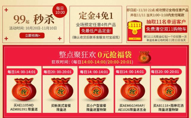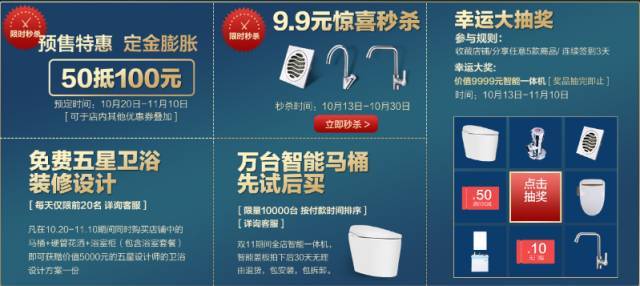 現(xiàn)在已進(jìn)入了雙十一倒計(jì)時(shí),對(duì)于很多衛(wèi)浴企業(yè)而言,“雙十一”作為國內(nèi)大型購物狂歡日,正是年終沖冠以及借力電商的好時(shí)機(jī)。日前,不少企業(yè)已經(jīng)提前打出“促銷牌”,各種新玩法讓人眼花繚亂。
