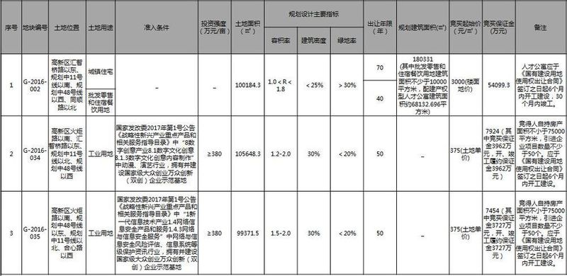 此次出讓包含1宗商住用地、2宗工業(yè)用地。其中商住用地占地100184.3㎡,容積率1.8,建筑面積180331㎡(包含人才公寓68133㎡),樓板地價3000元/㎡,起拍總價5.41億元。