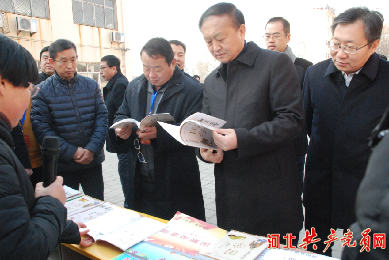 市委常委、宣傳部長(zhǎng)(右二)馬福華在饒陽(yáng)縣第二實(shí)驗(yàn)小學(xué)觀摩。記者扈文立/攝