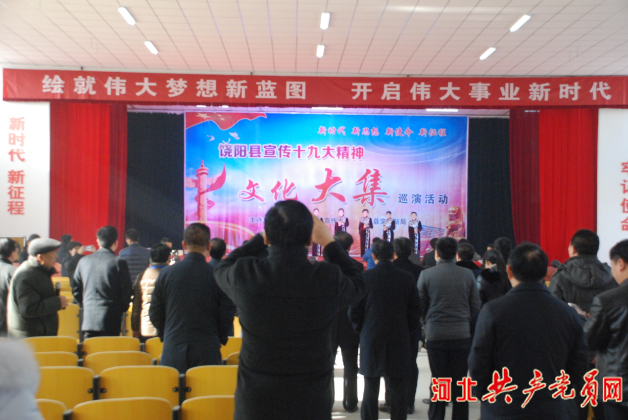 下午,集中開會(huì)。中共饒陽(yáng)縣委書記吳波致辭。他說,饒陽(yáng)縣緊緊圍繞迎接學(xué)習(xí)宣傳貫徹黨的十九大精神這條主線,瞄準(zhǔn)打造京津和雄安新區(qū)“大菜園”、“承接園”、“后花園”的目標(biāo)定位,擼起袖子加油干,始終把宣傳文化工作擺在突出位置,堅(jiān)持文化事業(yè)和文化產(chǎn)業(yè)比翼齊飛、共同繁榮,堅(jiān)持文化與農(nóng)業(yè)、旅游融合發(fā)展,實(shí)現(xiàn)了文化創(chuàng)收與文化惠民的雙贏,全縣9個(gè)鄉(xiāng)鎮(zhèn)區(qū)全部建起了文化站,197個(gè)村全部建起了文化大院,22個(gè)單位獲得市級(jí)文明單位表彰,崔池村榮獲“全國(guó)文明村鎮(zhèn)”殊榮,饒陽(yáng)縣被評(píng)為“全省文化產(chǎn)業(yè)十強(qiáng)縣”。