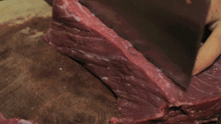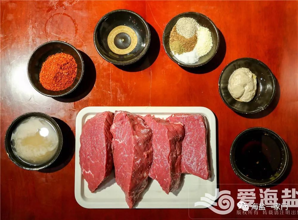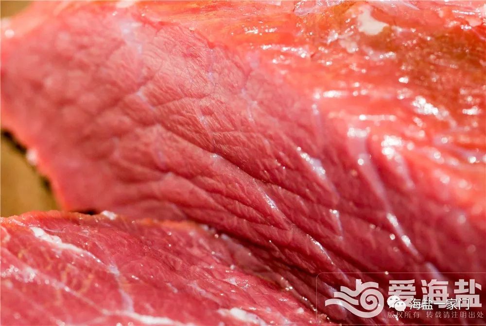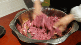 麻辣牛肉不能有肉筋,否則就會(huì)影響口感。塊狀的牛肉在刀鋒下被切成薄厚一致的肉片,這必須是得有多年刀工的師傅才能勝任的。