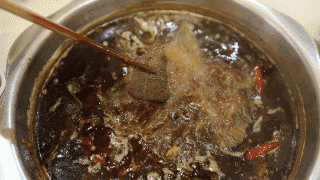 千層肚比毛肚更加清澈誘人,被滾燙的湯底浸潤(rùn)后,滋生出了些許鮮紅的色澤,湯汁滴滴答答的流淌下來,讓人食欲大開。