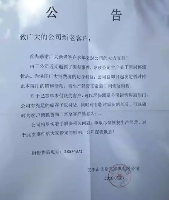 作為天津一家老字號家具企業(yè),圣斯克成立至今27年,在家具界有著不錯的口碑。事件發(fā)生后,家具同行也希望圣斯克盡快度過難關(guān)。