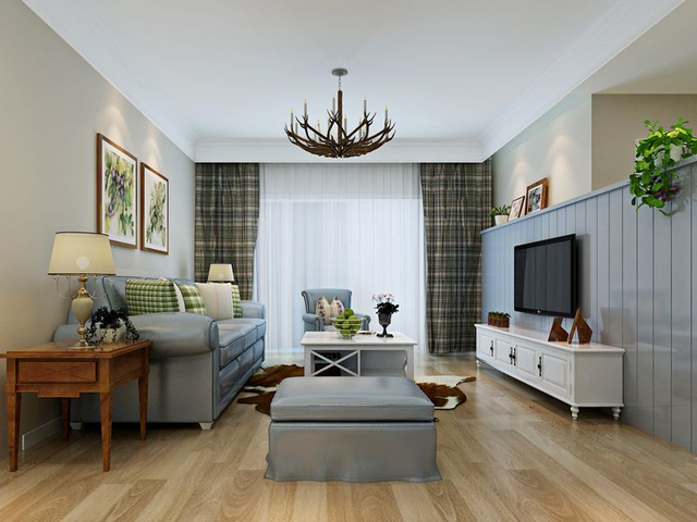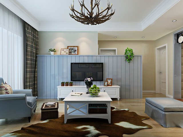 淡藍(lán)色簡單造型的電視背景墻,時(shí)尚大氣不丟范,溫馨自然很愜意。