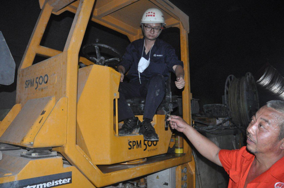 胡師傅在隧道中使用普茨邁斯特SPM500混凝土濕噴機(jī)作業(yè)