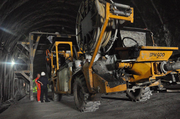 普茨邁斯特SPM500混凝土濕噴機(jī)在隧道中作業(yè)