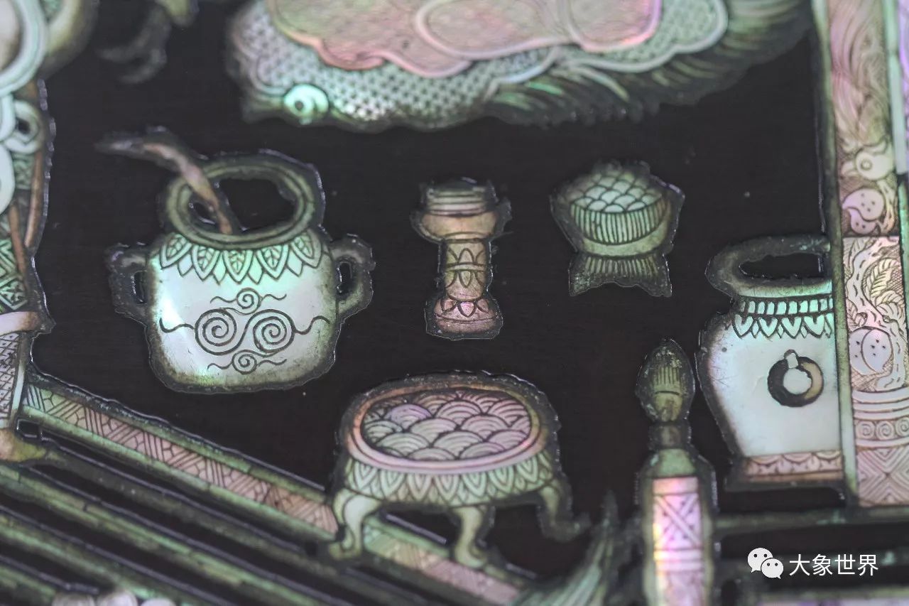 元大都出土的和保利華誼秋拍所見,便是體現(xiàn)的這種薄螺鈿工藝的極致了。
