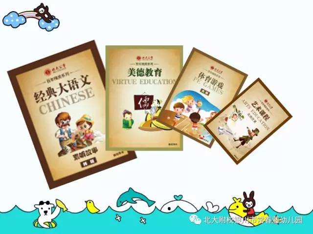 采用北大附校幼兒園九大百年精英課程體系,包括經(jīng)典大語文、精英英語、精英數(shù)學、美德、全健體、美術、音樂、社會實踐主題活動、科學小實驗。經(jīng)典大語文打下堅實國學基礎,通識教育促進孩子知識、能力的全面發(fā)展,另外每天安排英語教學,帶給孩子非凡的快樂學習體驗。