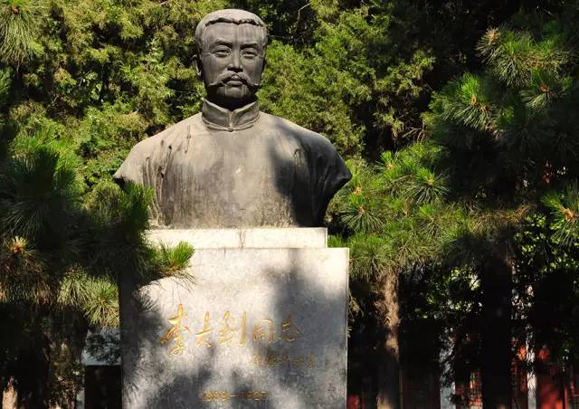 位于俄文樓前。李大釗先生的半身青銅雕像由北大學(xué)子自發(fā)捐資鑄建。1982年10月15日,它和蔡元培校長(zhǎng)銅像同時(shí)落成。該銅像是由我國(guó)著名雕塑家、中央美術(shù)學(xué)院傅天仇教授創(chuàng)作。