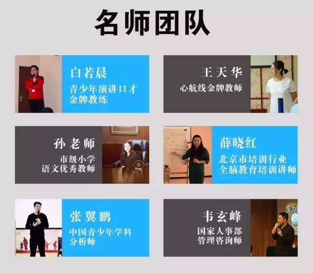 訓(xùn)練營(yíng)師資包括北大教授、心理學(xué)優(yōu)秀教師、基礎(chǔ)教育一線的優(yōu)秀教師、高考狀元、在校北大學(xué)子、作文等級(jí)考試的資深教練以及具備豐富教學(xué)經(jīng)驗(yàn)的外教及專家學(xué)者等。