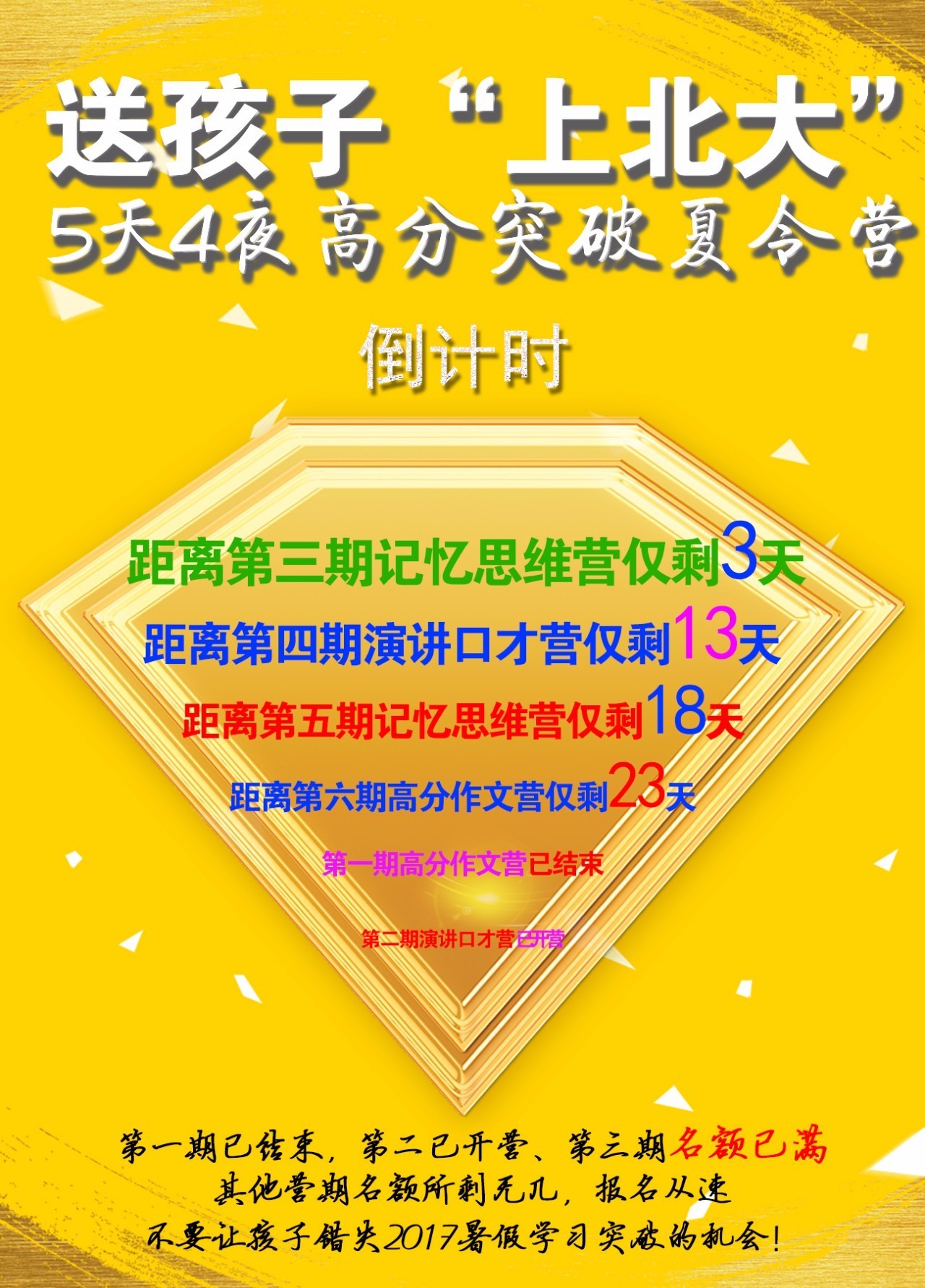 “以前一個(gè)單元的單詞,要背一晚上,才能勉強(qiáng)默寫。自從學(xué)了魔鬼訓(xùn)練記憶法后,英文單詞和課文,就像一幅幅有趣的畫面,清晰的刻在了我的腦子里。在這個(gè)夏令營(yíng)我收獲很多,第一個(gè)就是學(xué)到了很多知識(shí),第二個(gè)就是交到了很多朋友,最后一個(gè)最重要的收獲是,我們收獲了一種精神,一種永不服輸、團(tuán)結(jié)合作的精神。”