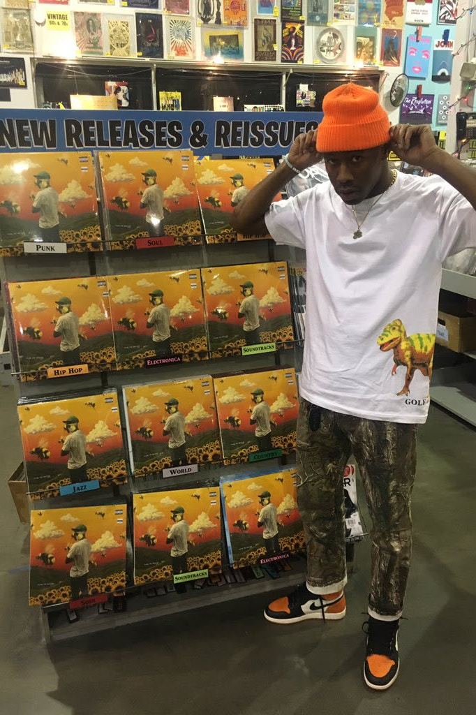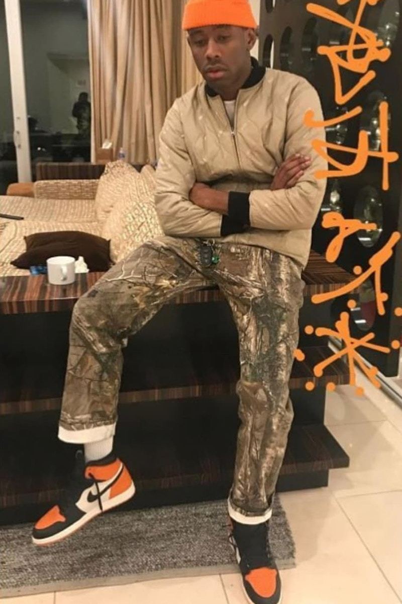 同樣是備受關注的趨勢人物,Tyler, The Creator 在早先開啟的 Golf Wang x CONVERSE 聯名系列成為了很多人關注的核心。不過細心的粉絲一定發現,Tyler, The Creator 在鞋履搭配上似乎對于帆布單品青睞有加,近日他一反常態的購買了人生第一雙 Jordan Brand,可以看到的是他選擇的單品則是話題配色, Air Jordan I “Shattered Backboard” ,不過對他擁有第一雙 Air Jordan I 還是有些意外的,畢竟像我們這樣的普通玩家都已經坐擁多雙了。那么現在還請一起看看他的駕馭。