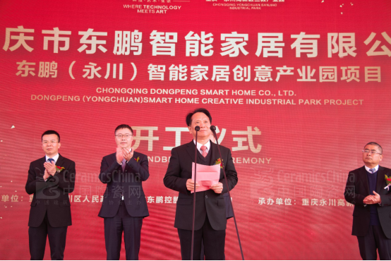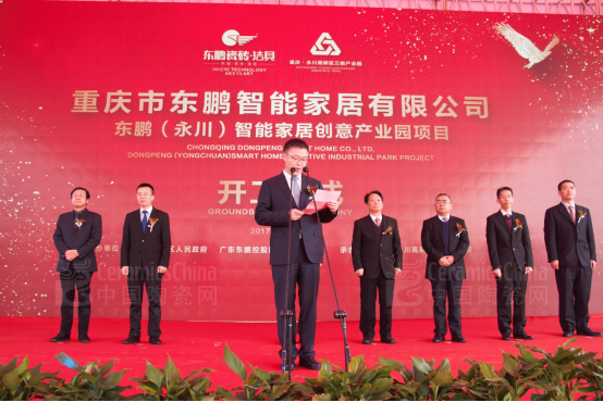 \u00A0 \u00A0 重慶市永川區(qū)委書(shū)記滕宏偉在儀式上宣布:“東鵬(永川)智能家居創(chuàng)意產(chǎn)業(yè)園”項(xiàng)目正式開(kāi)工!