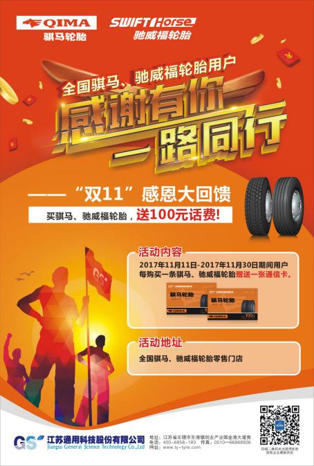 作為國內(nèi)卡客車輪胎領(lǐng)軍品牌,通用股份堅(jiān)持以“錘煉好人品、打造好產(chǎn)品”為核心理念,堅(jiān)持不懈為客戶提供優(yōu)質(zhì)的產(chǎn)品與服務(wù),同時(shí)為了感謝廣大司機(jī)朋友們的厚愛,公司緊貼客戶需求,特別開展雙十一感恩回饋?zhàn)尷顒?dòng),用行動(dòng)詮釋匠心精神。