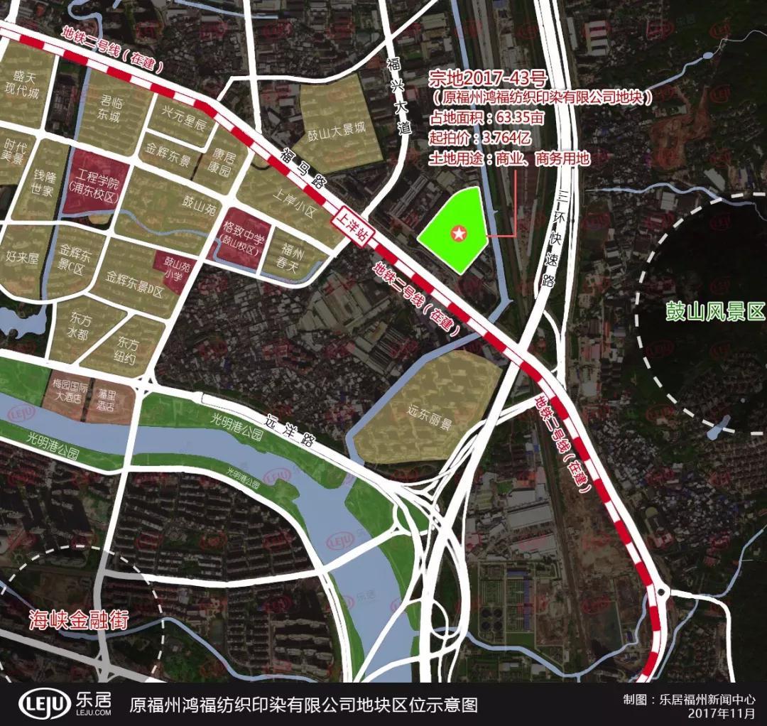 ??據(jù)悉,宗地2017-43號(hào)地塊占地41135平(約63.35畝)總建筑面積約106951平,容積率為2.6以下,土地用途為商業(yè)、商務(wù)用地,出讓起始價(jià)為3.764億。該地塊要求,該項(xiàng)目建成后須自持10年。該地塊毗鄰福馬路與福興大道,距離三環(huán)快速路較近,該地塊位于住宅核心區(qū),周邊有眾多大型小區(qū),此外,未來(lái)地鐵2號(hào)線上洋站就在地塊不遠(yuǎn)處。