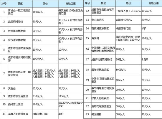 成都推出的部分旅游優(yōu)惠項(xiàng)目。\u00A0