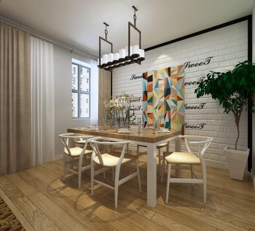 餐廳地面運用淺色地板,與餐廳家具形成顏色統(tǒng)一,使得空間效果更有質(zhì)感~
