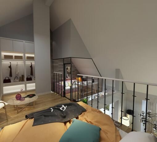 樓梯的方向從會客區(qū)開始,輾轉(zhuǎn)至夾層到閣樓增加整體空間的使用率~