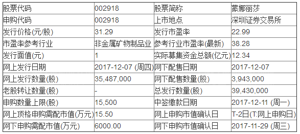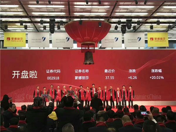 蒙娜麗莎A股12月19日在深交所上市,證券代碼為“002918”。