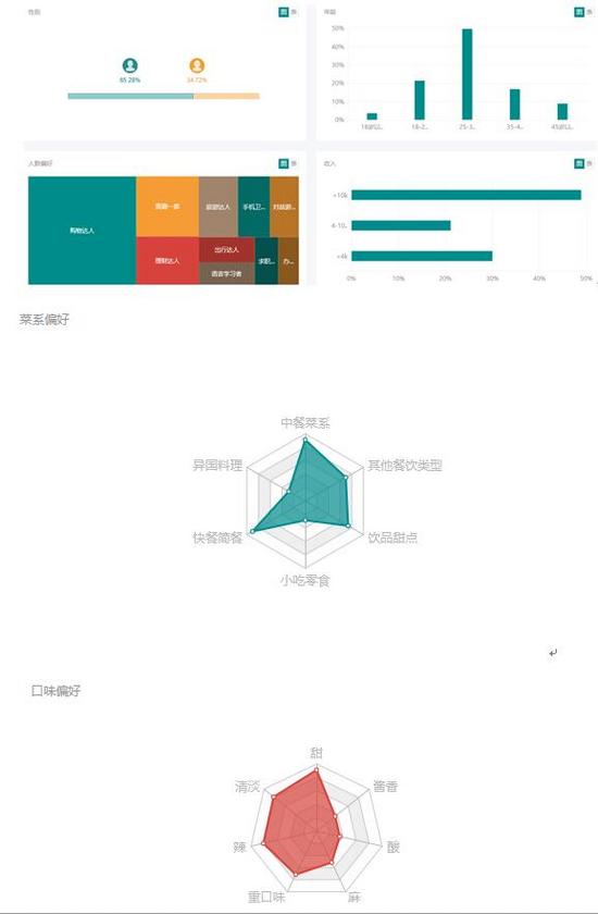 通過大數(shù)據(jù)的人群畫像,對消費人群的行為習(xí)慣、個性特質(zhì)、影響消費購買的主要因素等進行系統(tǒng)分析,再針對性地推出營銷方案。以開餐飲店來說,了解當?shù)叵M者的菜系偏好與口味偏好,是綜合租金、地段等因素之外亟需考慮的另一重要因素,所謂入鄉(xiāng)隨俗、因地制宜。與此同時,目標區(qū)域同類型餐廳情況、主要就餐習(xí)慣、常用外賣app是哪些、價格偏好、性別比例、年齡比例等等,MobData大數(shù)據(jù)讓目標消費者營銷變得簡單、聰明、高效。