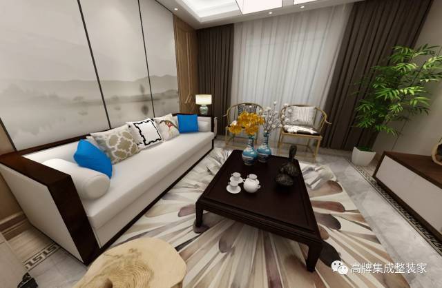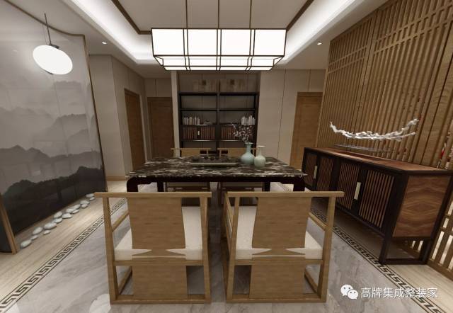 中式風(fēng)格裝修,內(nèi)斂而大氣,沉淀著中國幾千年的文化古韻,搭配上高牌集成墻面板的千變?nèi)f化,韻味十足。