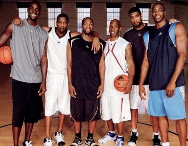 圖中的這幾個(gè)人相信大家應(yīng)該都很熟悉吧(除了那個(gè)妹子),這陣容看著都很帶勁有沒有,歐文打控衛(wèi),科比分位,詹姆斯小前鋒,杜蘭特大前鋒,濃眉中鋒,喬治第六人,兩個(gè)字完美,這陣容要打破勇士的73勝問題應(yīng)該不大吧,每個(gè)位置都有著很強(qiáng)的單打能力,在防守上除了歐文差一些,其他球員都有著不俗的表現(xiàn),這些巨星也是耐克簽約的六大巨頭,如果非要找對手,不妨來看看阿迪六虎。