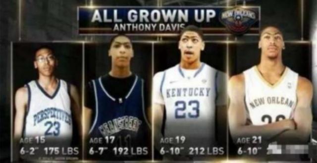 在濃眉哥安東尼戴維斯高中時期,他只是在球隊里面打控衛(wèi),但是隨著年齡的增加濃眉哥的身體發(fā)生了翻天覆地的變化,別人都是身體某個部位突然增長,而濃眉哥則是吹氣球一般的成圈的增長。