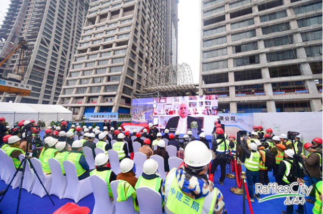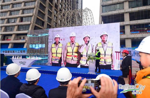 重慶來福士廣場水晶連廊起吊活動現(xiàn)場