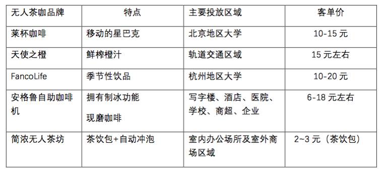 以上介紹的新茶飲品牌都針對(duì)中等消費(fèi)水平的年輕人,門(mén)店面積在100-200平米之間。與這些線下新茶飲品牌走差異化路線的,是近年來(lái)同樣火熱的無(wú)人茶咖。對(duì)于單價(jià)較低的茶飲咖啡而言,智能機(jī)柜是個(gè)好的售賣(mài)選擇。