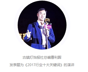 古鎮(zhèn)燈飾報(bào)社總編曹利暉通過十大關(guān)鍵詞回顧了2017年行業(yè)熱點(diǎn)事件:環(huán)保、倒閉、上市、專利維權(quán)、原創(chuàng)、智能、新零售、輕奢、洗牌、品牌。他提出,轉(zhuǎn)型升級(jí)要回歸商業(yè)本質(zhì),以工匠精神專注產(chǎn)品、鑄造品牌,才是企業(yè)的根本;重構(gòu)品牌競(jìng)爭(zhēng)力,以品質(zhì)為核心,展現(xiàn)生活態(tài)度和生活方式,才是企業(yè)重新煥發(fā)生命力的關(guān)鍵;以創(chuàng)新精神,重塑內(nèi)部核心競(jìng)爭(zhēng)力和外部市場(chǎng)競(jìng)爭(zhēng)力,驅(qū)動(dòng)并引領(lǐng)消費(fèi)升級(jí)和經(jīng)濟(jì)轉(zhuǎn)型才是實(shí)體企業(yè)轉(zhuǎn)型升級(jí)的出路和正途。