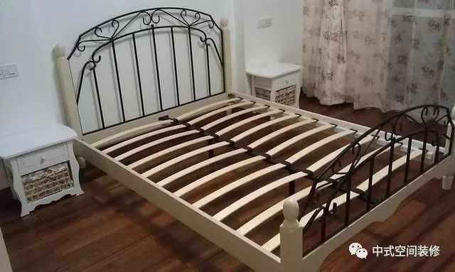 次臥的家具,買的排骨床架,搭配兩個床頭柜,整體還是蠻漂亮的。墻面刷的大白墻,簡單耐看。