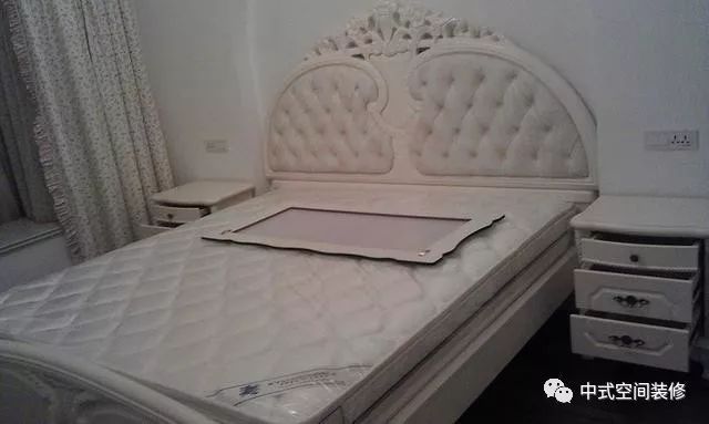 主臥沒啥特別的,基礎(chǔ)裝修和次臥一樣,歐式風(fēng)格的床架,靠背軟硬包結(jié)合的,還是蠻舒服的。