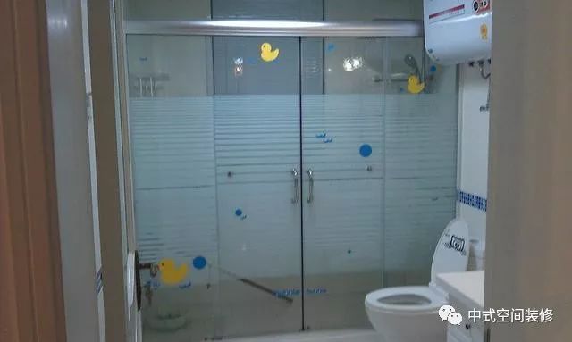 主衛(wèi)都是一些常見的裝修,玻璃移門買了些小貼畫裝飾,看著挺清爽的。