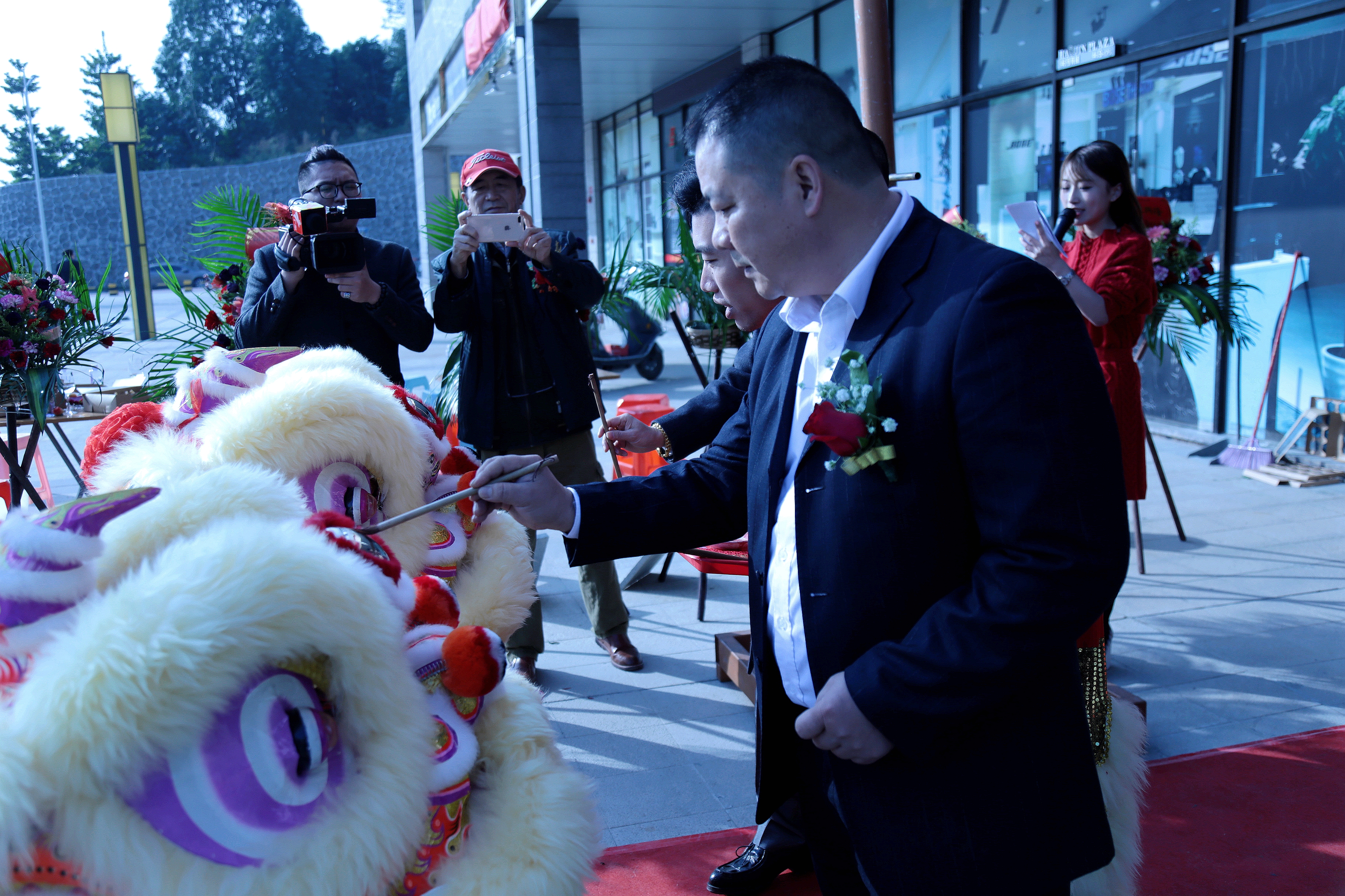 (雄獅翻騰,拉開了開業(yè)典禮的大幕)