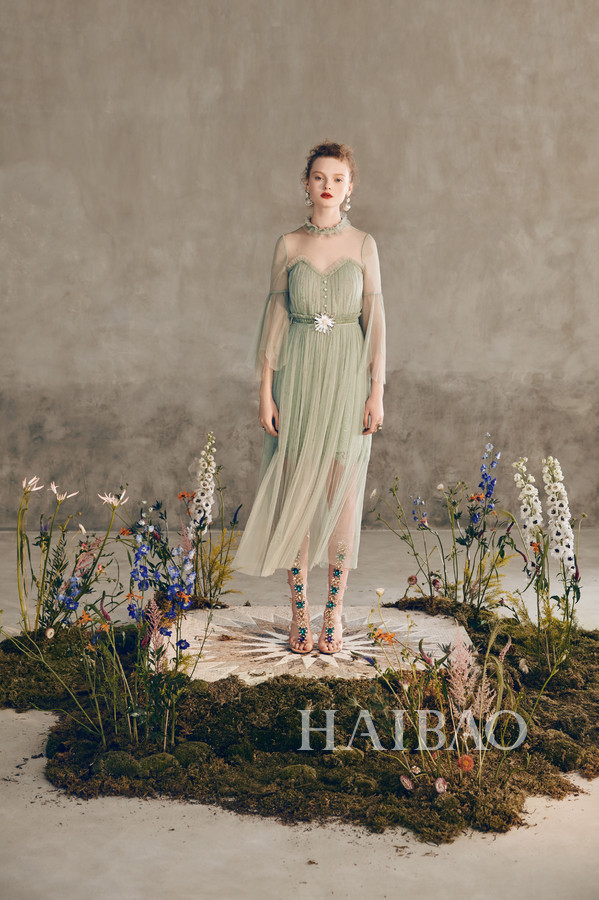 如果只能用一個故事,去講述女人降生于世是最美奇跡,那么2018春《消失的迷宮》就該是那份唯一。瑪克茜妮 (Maxrieny) 將故事班師納林河畔的Ourea山脈,傳言坐落山脈間的落日迷宮藏有神界古老瑰秘,終年漫天紫霧氤氳繚繞,僅在日出光照那一瞬間影現(xiàn),盡管千百年來探險勇士前仆后繼,卻始終無人生還,唯有Miriam女神能自由來去,而那閃耀金光的玲瓏鳥正是她的化身,伴隨她的華麗飛翔,開啟唯美而華麗的設計意境。