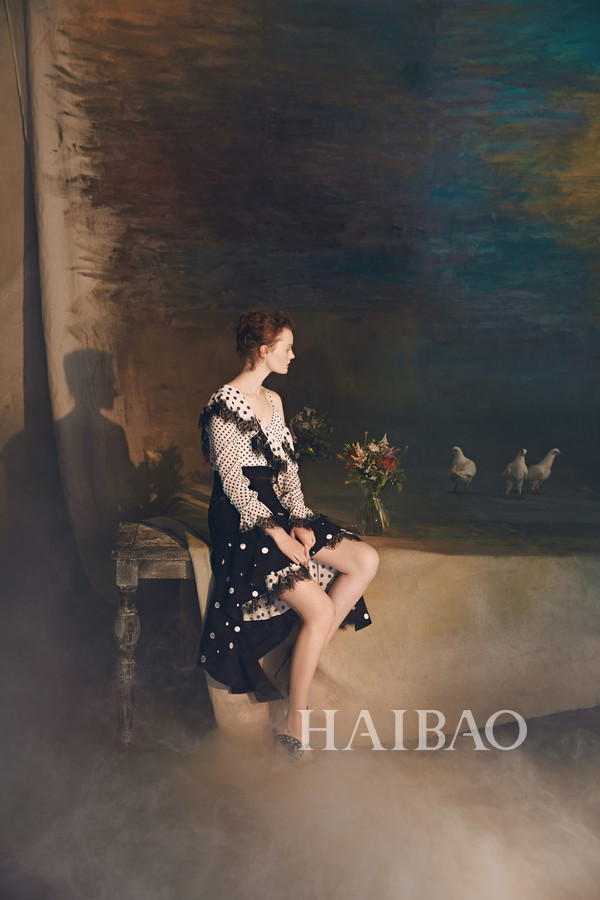 瑪克茜妮 (Maxrieny) 最新季度時尚大片,在懷舊情懷中展開,以抽象城堡廓型,以及象征皇室權威的大面積垂簾為旗幟,宣告2018春季重返輝煌維多利亞時代。背景的特殊斑駁漸變效果,猶如油畫筆觸,透過光與影、暗與明的混合光線切割,勾勒出視覺層次,讓畫面成了一幀幀藝術剪影,而你就該是女王眾所矚目。