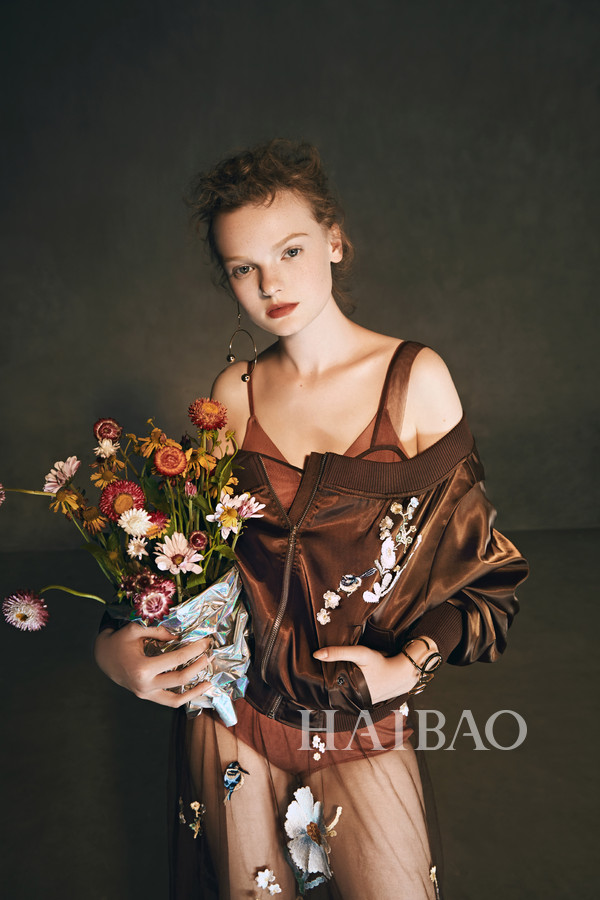 時尚必須是充滿無限的奇幻妙想。以金絲雀為自由象征,瑪克茜妮 (Maxrieny) 穿越迷霧城堡前往童話秘境:女人如花美麗高張,夸張的巨大玫瑰花反襯出模特兒內心自在,而一地綠苔與小小花綴則是童真趣味,營造出超現(xiàn)實氛圍;在如夢似幻的場景中,銅金色調的圖騰和魔法封印進一步催化奢美感,將華麗概念極致發(fā)揮。