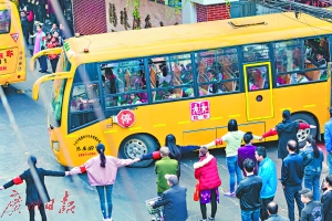 下午3時40分,一輛輛校車從海珠區(qū)康樂小學駛出,副校長劉建敏帶領10多位值班老師在校門口手牽手排成兩排“人墻”,將雜亂的交通臨時截斷,目送學生們安全離校。這是平常的一幕,卻連續(xù)上演了近20年,這堵“最美人墻”成為了康樂村中一道美麗的風景。