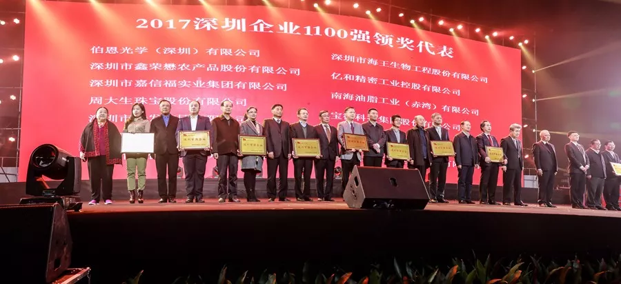 在中國企業(yè)聯(lián)合會、廣東省企業(yè)聯(lián)合會、深圳市政府相關(guān)職能部門和有關(guān)專家的支持下, 經(jīng)過調(diào)研和數(shù)據(jù)審核,評委會確定了“2017深圳企業(yè)100強(qiáng)”入圍名單,于2017年11月30日—12月6日向社會公示,最終上榜的企業(yè)在“2018企業(yè)家與市領(lǐng)導(dǎo)新春聯(lián)誼會暨2017深圳企業(yè)100強(qiáng)頒獎(jiǎng)盛典”上受頒“2017年度深圳百強(qiáng)企業(yè)”榮譽(yù)稱號。