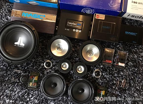 后吧臺(tái)奧迪A4L原裝超低音和美國(guó)捷力低音對(duì)比