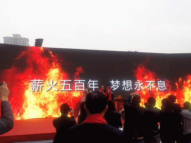 \u00A0\u00A0\u00A0 集團(tuán)董事長(zhǎng)梁桐燦與威爾斯陶瓷營(yíng)銷總經(jīng)理李基華共同點(diǎn)燃窯火儀式。薪火五百年,夢(mèng)想永不息,熊熊的火焰講述了一代代陶瓷人的傳承故事。