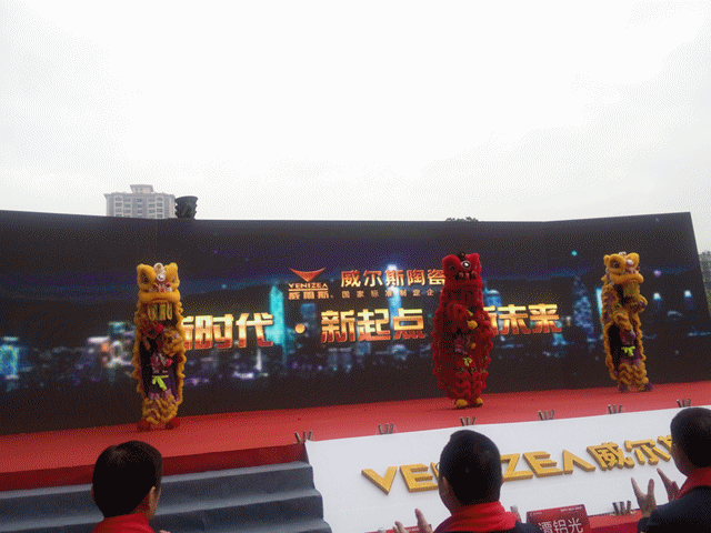 集團(tuán)董事長(zhǎng)梁桐燦與威爾斯陶瓷營(yíng)銷總經(jīng)理李基華為醒獅點(diǎn)睛,開啟吉祥鴻運(yùn)。