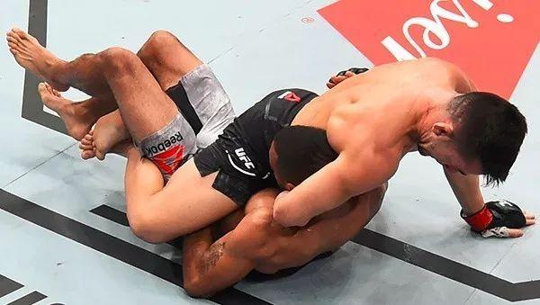 馮特身高臂展占優(yōu),開(kāi)局在拼拳上頗占上風(fēng),但在一次纏斗中,穆尼奧茲抓住瞬間機(jī)會(huì)用上位斷頭臺(tái)降服馮特獲得了勝利。