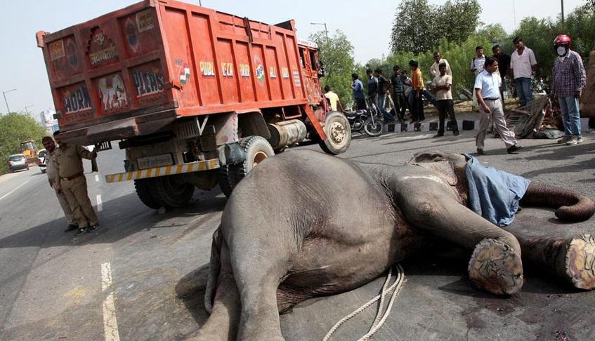 這輛重卡因為剎車失靈以高速撞上了這頭當時正在過馬路的母象,巨大的沖擊力使母象被撞飛,并且當場死亡。
