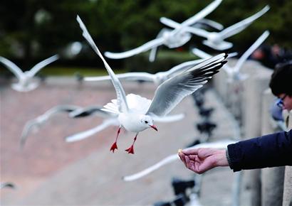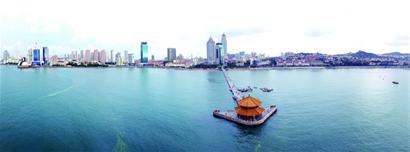 走過這幾處獨(dú)具異域特色的古老建筑,眼睛不自覺往海的方向一瞥,在堤壩和黑松的掩映下,已經(jīng)清楚地看到青島的標(biāo)志——棧橋就在眼前。海鷗成群飛舞,冬日的海展現(xiàn)著它的別樣魅力,晴朗的天空下,沙灘在溫暖柔美中略顯明媚,悠遠(yuǎn)綿長里蘊(yùn)含著一絲慵懶與從容。海面風(fēng)帆點(diǎn)點(diǎn),波光粼粼,海風(fēng)似情人的呢喃,溫柔舒緩。站在太平路上觀望,茫茫汪洋盡收眼底。棧橋本是1892年建的軍用碼頭,后成為觀光旅游景點(diǎn)。1915年勞乃宣在詩中寫道:“海天萬頃清光煦,沙堤千尺沿低樹,斯須軒足登棧橋,直到滄波漸深處,士女如云不知數(shù)……”棧橋后來曾多次大修、改建,增建的回瀾閣,是青島第一個(gè)百年的標(biāo)志。