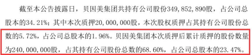 這已不是貝因美集團(tuán)第一次補(bǔ)充質(zhì)押,2017年11月底,貝因美集團(tuán)就曾補(bǔ)充質(zhì)押了3000萬(wàn)股。截至目前,貝因美集團(tuán)已將68.6%的公司股份質(zhì)押。
