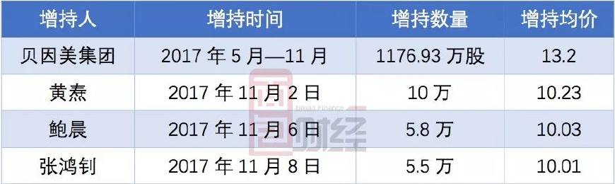 2017年5月—2017年11月期間,貝因美控股股東—貝因美集團(tuán)(截至目前,持有貝因美34.21%的股份),累計(jì)增持1176.93萬(wàn)股,占公司總股本的1.15%。