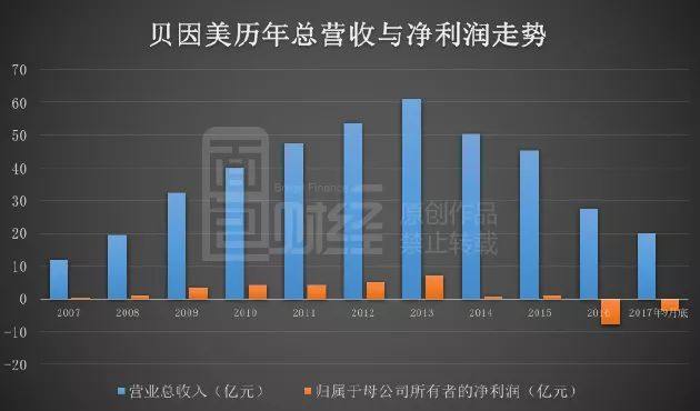 2011年4月,貝因美在深交所上市。上市后,公司業(yè)績(jī)?nèi)跃S持了一段時(shí)間的增長(zhǎng)。2013年,貝因美總營(yíng)收為61.17億,凈利潤(rùn)為7.21億,營(yíng)收與利潤(rùn)雙雙創(chuàng)下歷史新高。不過(guò),從2014年起,公司業(yè)績(jī)急速下滑,2016年甚至出現(xiàn)巨額虧損,虧損額高達(dá)7.81億。