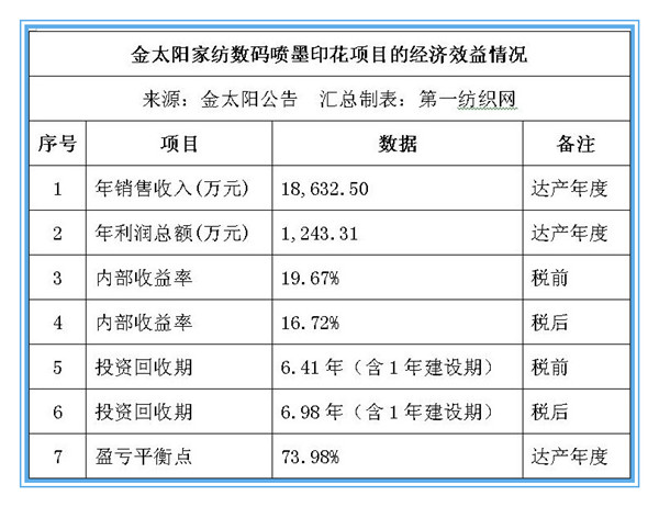 金太陽家紡數(shù)碼噴墨印花項目的經(jīng)濟效益情況
